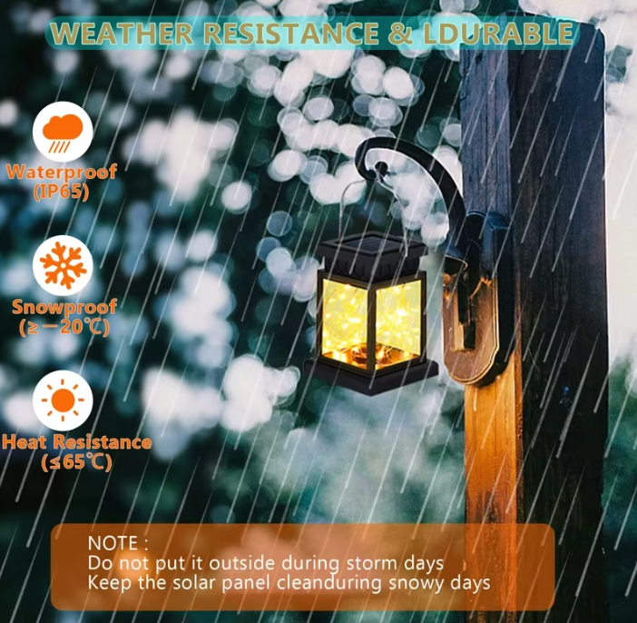 Dank der Schutzklasse IP65 ist die Solarleuchte wasserdicht und für den dauerhaften Einsatz im Außenbereich geeignet. Das ABS-Gehäuse sorgt für eine robuste und langlebige Bauweise. Die Leuchte eignet sich ideal als Akzentbeleuchtung, für saisonale Dekorationen oder als stimmungsvolles Lichtobjekt im Außenbereich.
