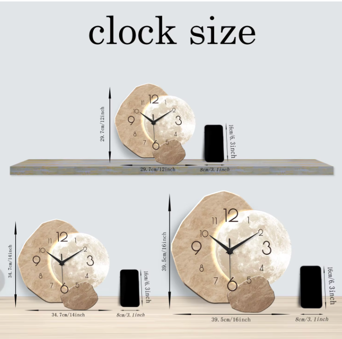 Diese moderne, schlichte Wanduhr im Monddesign verbindet eine ruhige Ästhetik mit funktionaler Zeitmessung. Das stilvolle Mondmotiv verleiht der Uhr eine besondere Tiefe und macht sie zu einem eleganten Blickfang für Schlafzimmer, Wohnzimmer oder Büro.