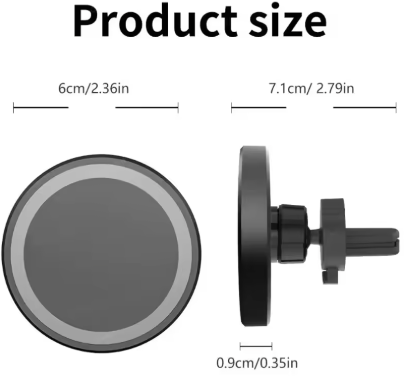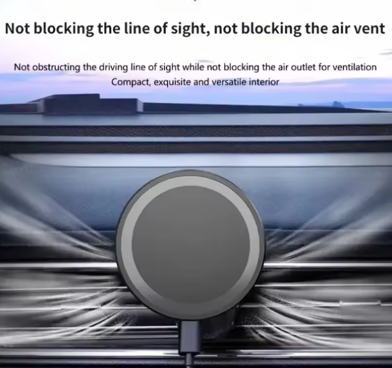 Das magnetische kabellose Auto-Ladegerät kombiniert stabile Handyhalterung und kabellose Schnellladefunktion in einem kompakten Design. Es wird sicher an der Lüftungsöffnung des Fahrzeugs befestigt und ermöglicht komfortables Laden sowie einfache Bedienung während der Fahrt.