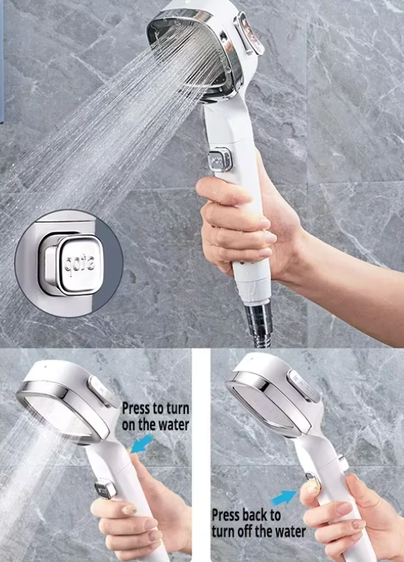 3-Modi Handbrause mit Ein-Knopf-Wasserstopp