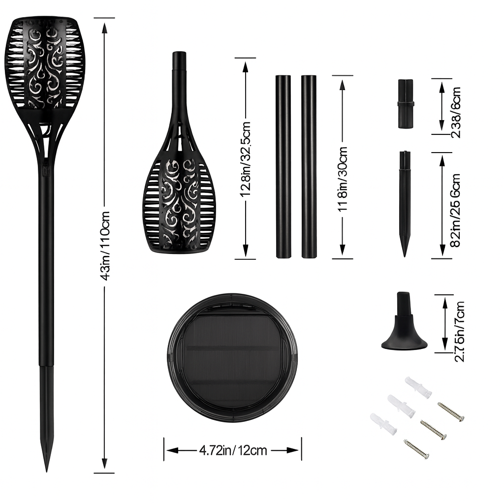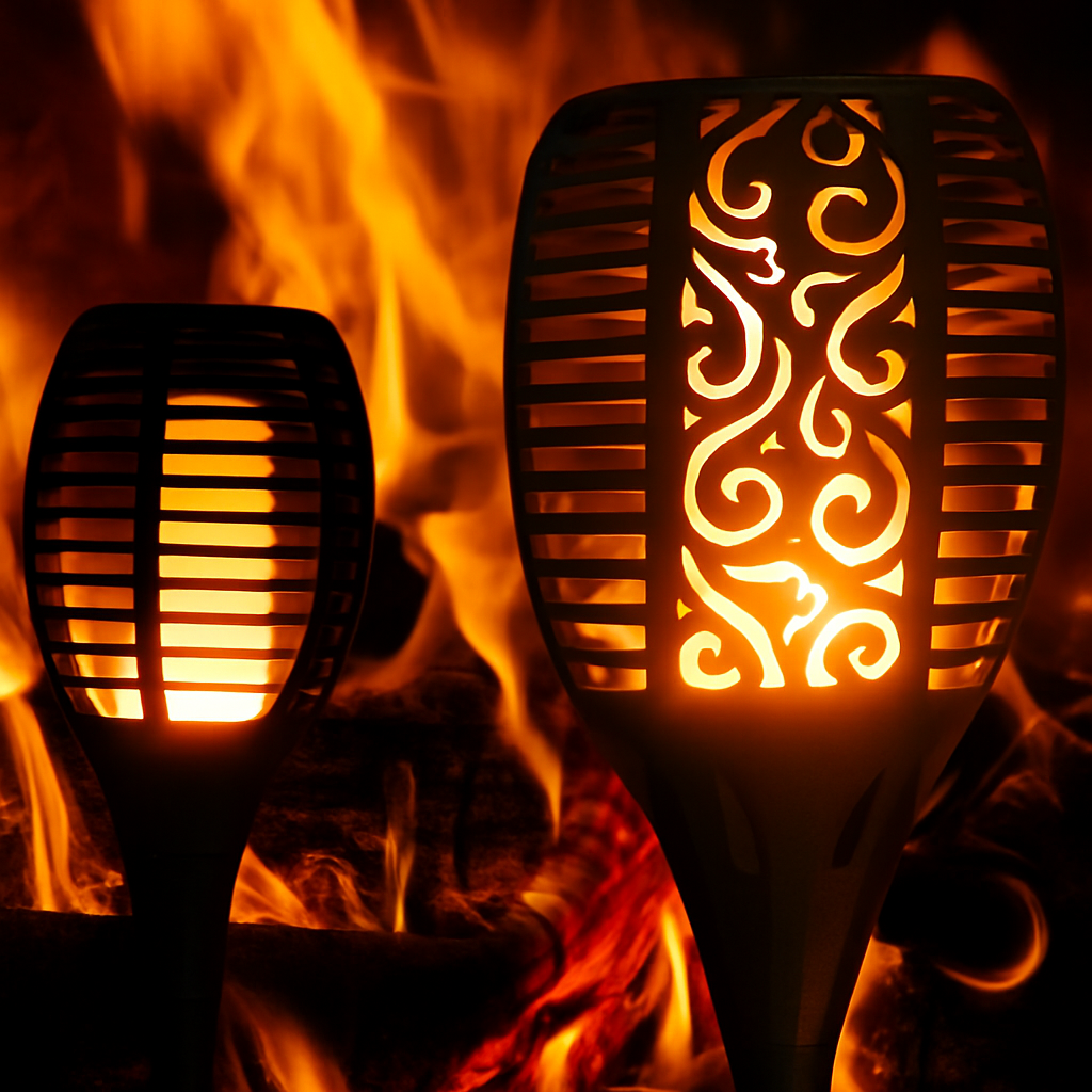 Die Installation erfolgt in wenigen Sekunden: Einfach den Erdspiess an der gewünschten Stelle in den Boden stecken – ganz ohne Kabel oder Werkzeug. Das robuste ABS-Gehäuse ist hitzebeständig, wetterfest und nach IP65 gegen Regen und Feuchtigkeit geschützt. Damit sind die Gartenfackeln für den ganzjährigen Außeneinsatz bestens geeignet.