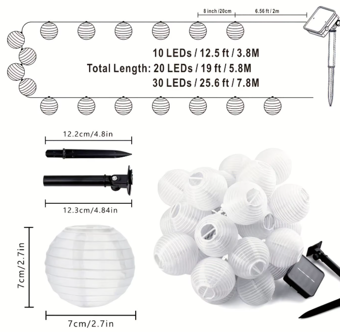 Die LED Solar Kugel-Laternen Lichterkette ist eine dekorative Außenbeleuchtung für Garten, Terrasse, Balkon, Innenhof, Treppenbereiche und Außenflächen. Die Laternen-Girlande sorgt für eine warme, einladende Atmosphäre und eignet sich ideal für Weihnachten, Hochzeiten, Partys und saisonale Dekorationen.