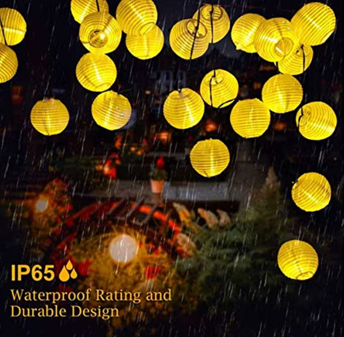Dank der Wasserdichtigkeit nach IP65 ist die Solar-Lichterkette für den dauerhaften Einsatz im Außenbereich geeignet. Die Laternen bestehen aus robustem, wasserdichtem Material und behalten auch tagsüber ihre dekorative Optik.
