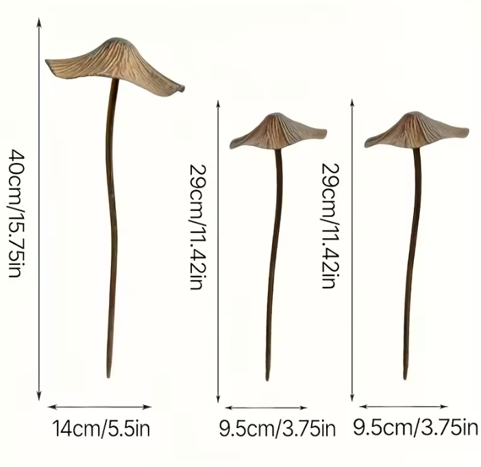 Gefertigt aus Metall in rustikaler Rostoptik, fügt sich die Pilzdekoration harmonisch in natürliche Umgebungen ein. Die Bodenmontage ermöglicht eine stabile Platzierung auf Rasen, in Blumenbeeten oder entlang von Wegen – ganz ohne Strom oder Batterien.
