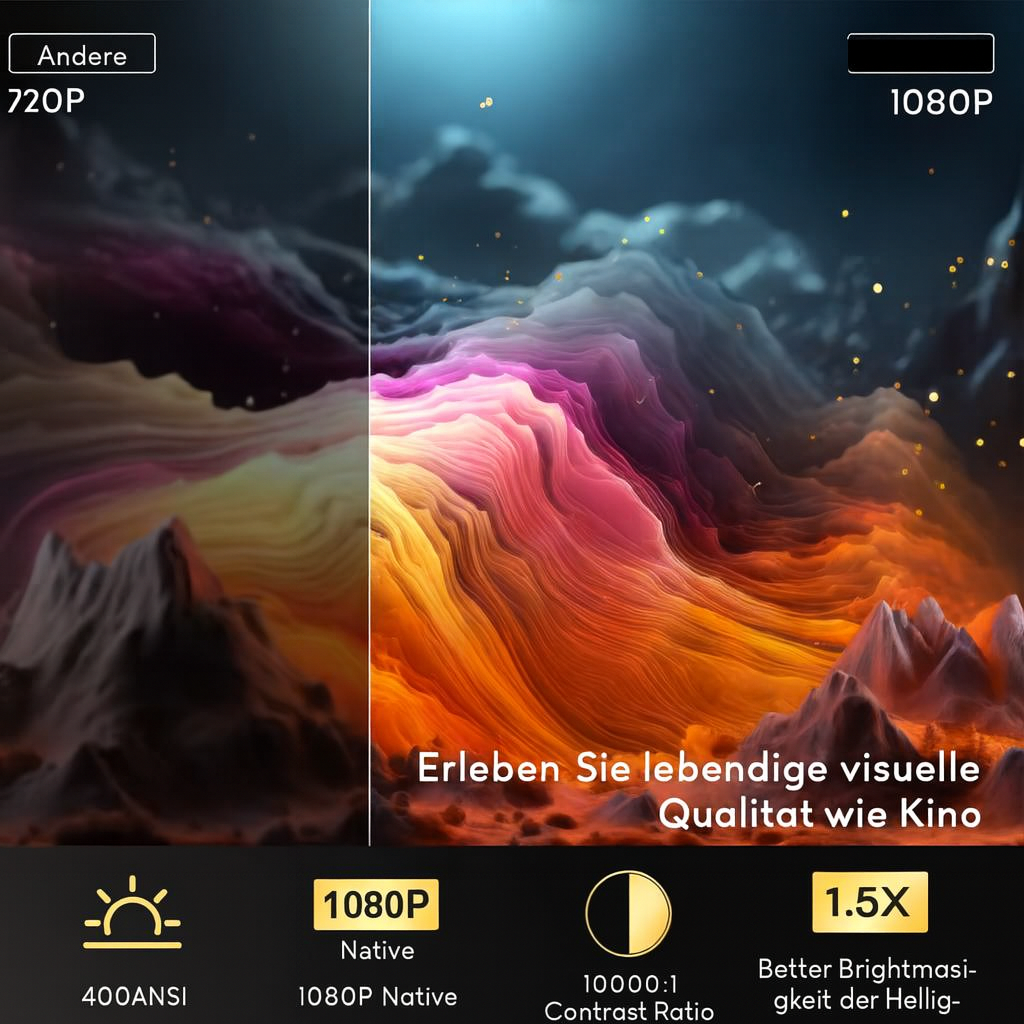Der VisionGo ist ein moderner Heimkino-Projektor mit nativem Full HD, kraftvoller Helligkeit und echtem Smart-TV-Feeling – inklusive offiziell lizenzierter Streaming-Apps wie Netflix, YouTube, Prime Video und Disney+. Ob für Filme, Serien oder Präsentationen: Dieser All-in-One-Beamer verwandelt jeden Raum in ein hochwertiges Kinoerlebnis.